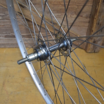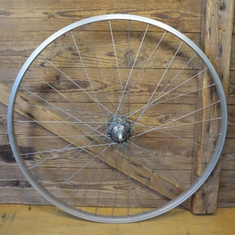 Laufrad hinten 26 x 1 3/8 (590-18) "Schürmann" Alu, 36-Loch Ventilbohrung 8,3 mm, Breite 23 mm, Einbaumaß 120 mm, Nabe "Weco" verchromt, Speichen rostfrei, Alte Neuware