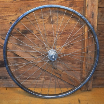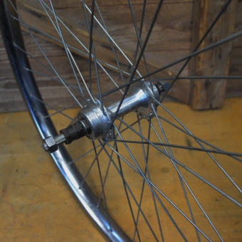 Laufrad hinten 26 x 1.90, "Rigida" verchromt, 36-Loch, Ventilbohrung 8,5 mm, Einbaumaß 126 mm, Breite 32,5 mm, Nabe "F&S" mit Lagerpatina