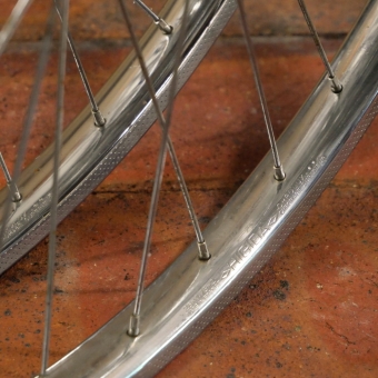 Bremsklaue 13 mm, Speichen 2 mm verchromt, gebraucht mit schöner Patina, technisch o.k., Zustand gemäß Fotos