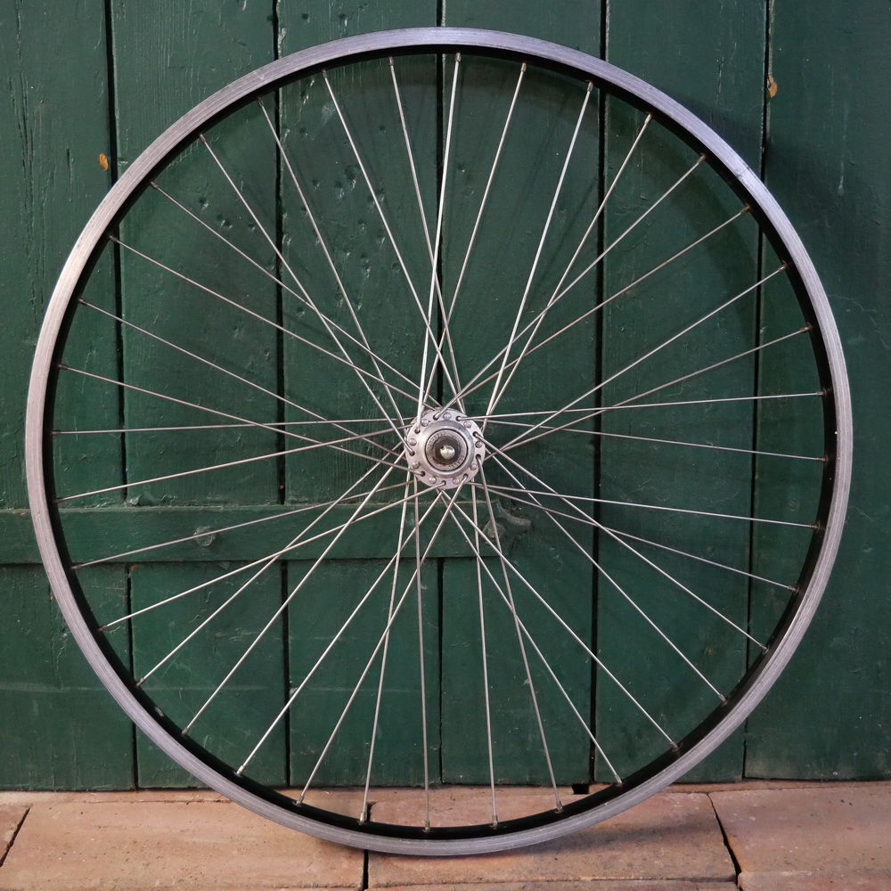 Vorderrad RIGIDA, 26 Zoll(559), Alu, schwarz, für Drahtreifen, Breite ca. 26 mm, SACHS V3, Alu, Vollachse, Einbaumaß ca. 100 mm, 2/2,34mm ED-Speichen Nirosta, gebraucht, Zustand gemäß Fotos