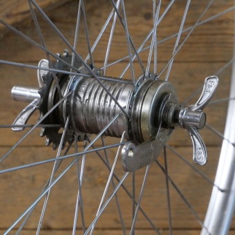 Hinterrad 26 Zoll (650B), 60er J., WEINMANN Drahtreifenfelge, Alu poliert, Breite 25 mm, Nabe: SACHS Torpedo