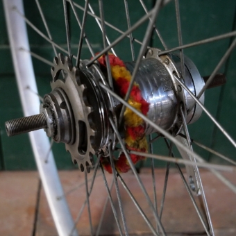 Hinterrad, 27 Zoll (630mm), original 70er/80er J., SCHÜRMANN Alu-Felge silber, Breite ca. 23mm, Torpedo 3-Gang S-Nabe, Einbaumaß ca. 117mm, 2mm Zink-Speichen, Gebrauchs- u. Lagerungsspuren, 5 Speichen erneuert, Zustand gemäß Fotos