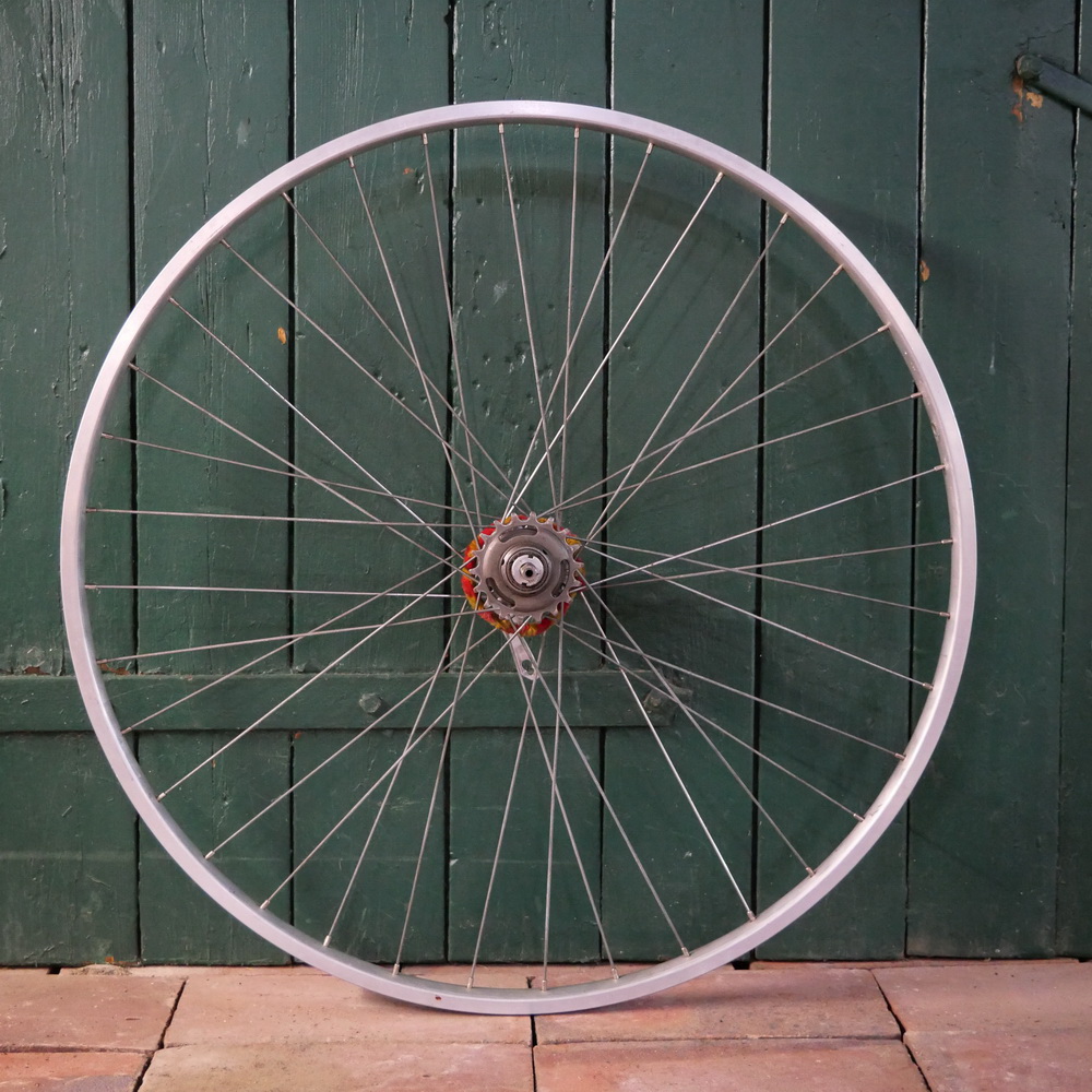 Hinterrad, 27 Zoll (630mm), original 70er/80er J., SCHÜRMANN Alu-Felge silber, Torpedo 3-Gang Nabe, gebr.