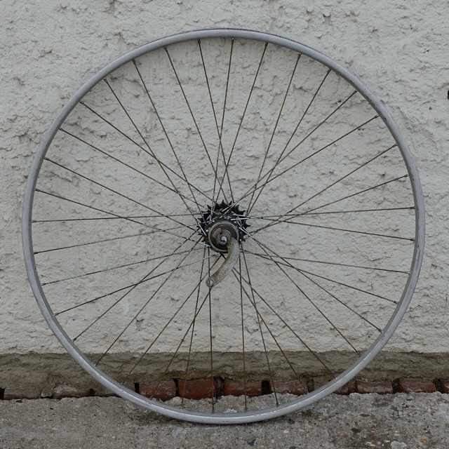 Hinterrad, 28 " (622-24), Alu "SCHÜRMANN", 28mm breit, Nabe F+S (B) , gebraucht Speichen verchromt, Einbaumaß: 110mm, Speichen rostig