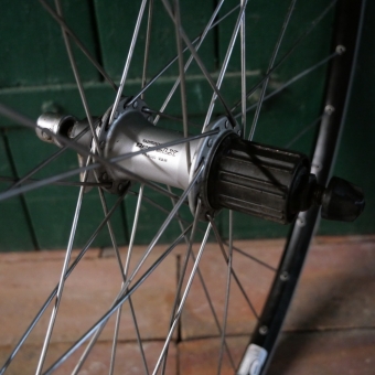 Laufrad hinten, 28 Zoll (622mm), Alu-Hohlkammerfelge, "Shimano Deore"-Kassettennabe, gebr.