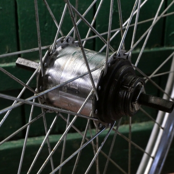 Laufrad hinten, 28 Zoll (635mm), Westwood chrom "Raleigh", Breite ca. 37mm, Sturmey Archer 3-Gang
