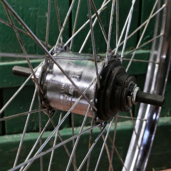 Laufrad hinten, 28 Zoll (635mm), Westwood chrom "Raleigh", Breite ca. 37mm, Sturmey Archer 3-Gang