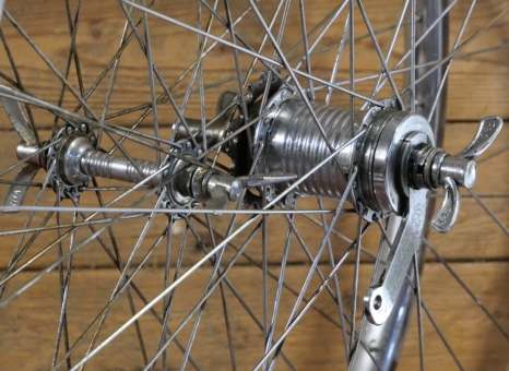 Einbaumaß ca. 90/115, Naben: vorn UNION verchromt/hinten F&S TORPEDO 3-Gang 515 verchromt, Speichen 2 mm