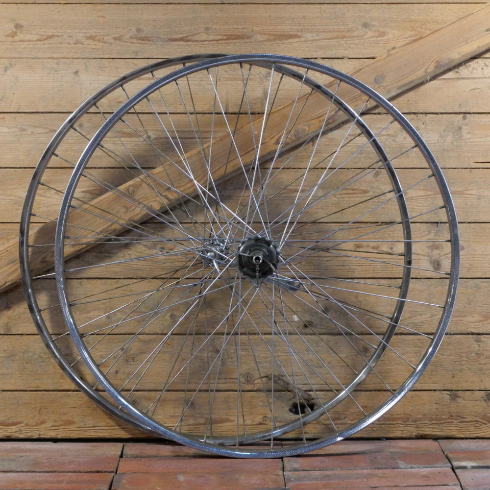 Laufradsatz 28 Zoll (622) REGIDA Chrom für Drahtbereifung, original 60er/70er J., Felgenbreite ca. 29 mm,