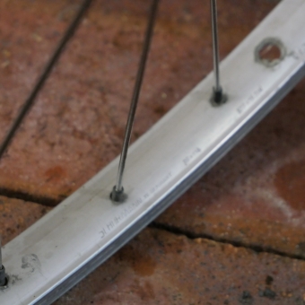 Vorderrad mit SCHÜRMANN-Felge, Alu, 28 Zoll (622), 80er J., Breite ca. 25 mm, Nabe Maillard