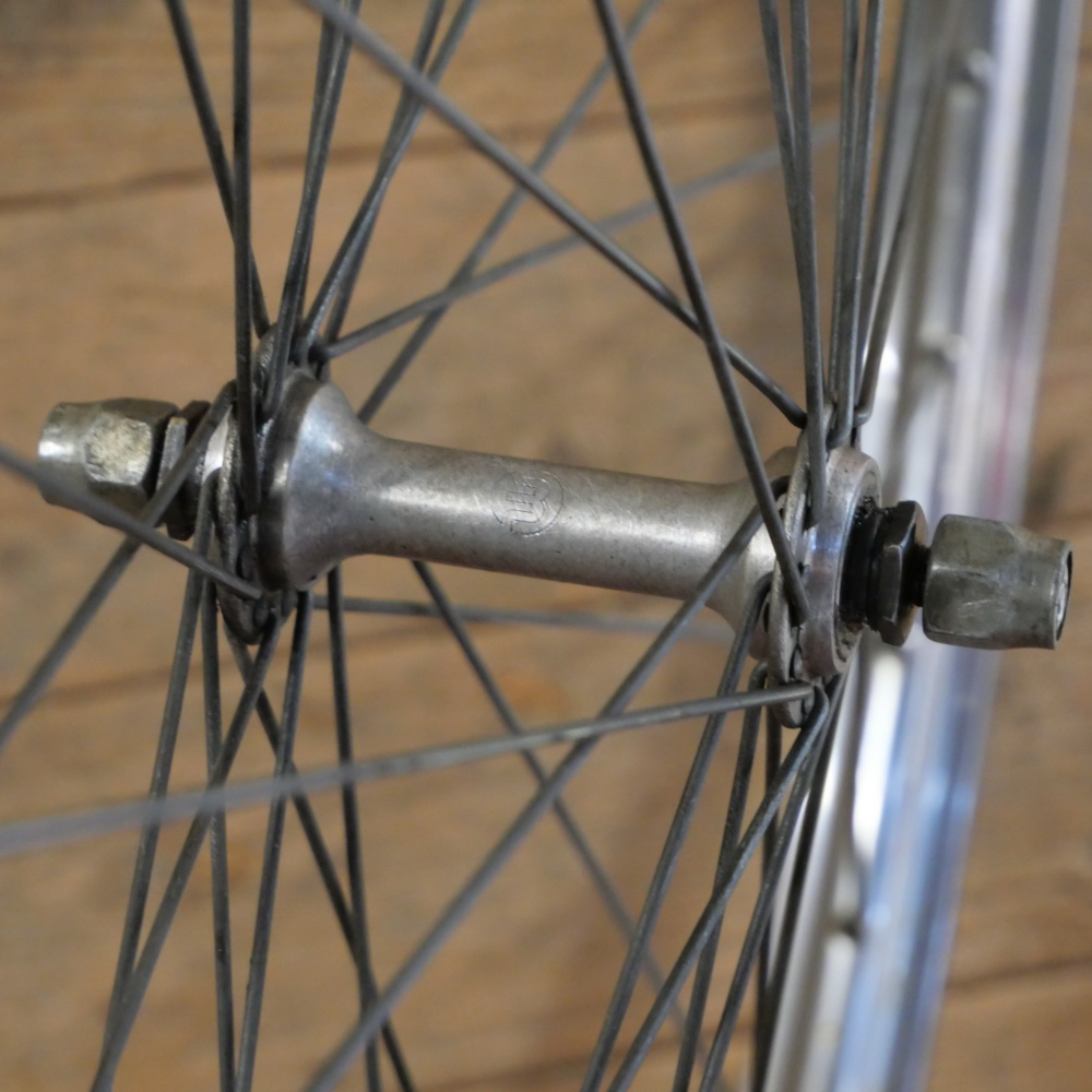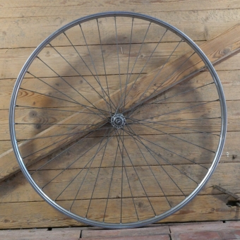 Vorderrad mit Westwood-Felge, 28 Zoll (622), verchromt, 1980er J., Breite ca. 33 mm, MAILLARD-Nabe, Einbaumaß ca.