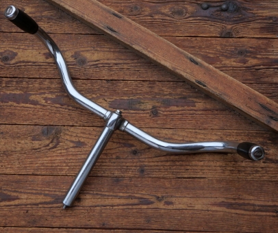 Fahrradlenker NSU-Form, 30er-50er J., verchromt, Durchmesser Lenkrohr und Schaft 22,2 mm, Breite ca. 560 mm,