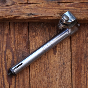 Vorbau Fahrrad KOERDT (FRIKO), original 50er/60er Jahre, für Sportrad, verchromt, Länge 65 mm, Schafthöhe ca. 160 mm, Durchmesser Klemmung 25 mm, gebraucht mit Patina, Zustand gemäß Fotos.