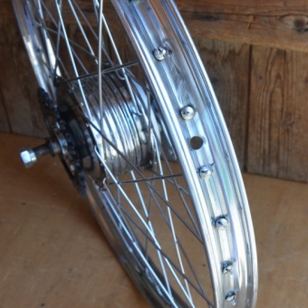 Hinterrad für Mofa, 23 x 2,00, verchromt, Speichen zu lang, Trommelbremsnabe Union T147, 50er Jahre, restauriert