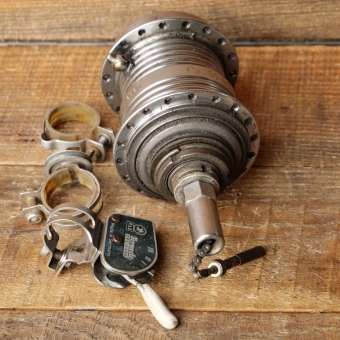 Nabe Hinterrad Fahrrad, F&S Torpedo 3-Gang Mod. 55, original 50er/60er J., verchromt, Ausführung ohne Rücktritt, Einbaumaß ca. 115 mm, 36 Loch, inkl. orig. Zubehör, gebraucht mit schöner Patina, Lager und Funktion gut, Zustand und Lieferumfang siehe Fot