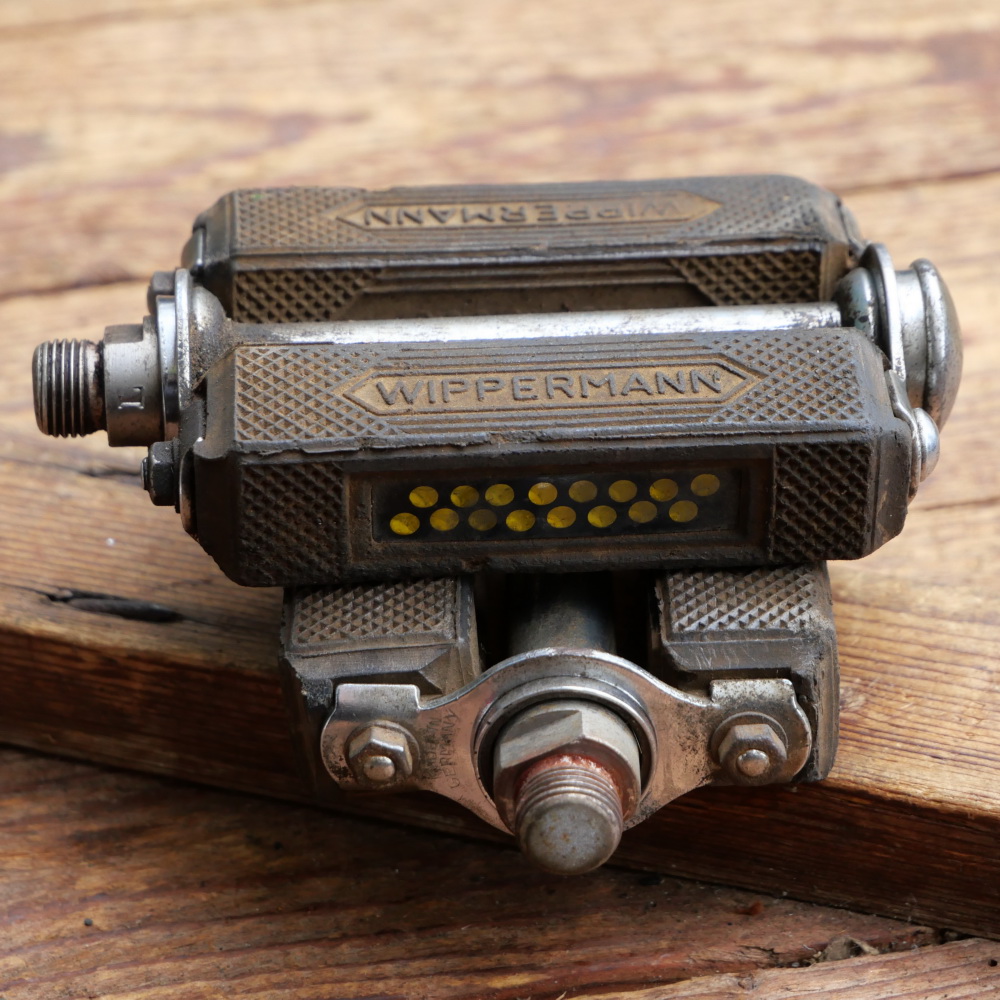Pedale WIPPERMANN, für Tourenrad, schwarz, original 50er Jahre, Blankteile verchromt, klassische