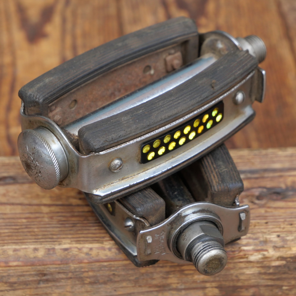 Pedale WIPPERMANN, für Tourenrad, schwarz, original 50er Jahre, Blankteile verchromt, Echtglasreflektoren, Fußauflage ca. 9,5 x 6cm, Gewinde 9/16 Zoll (Standardgewinde), gebraucht mit schöner Patina, Zustand gemäß Fotos