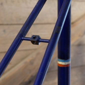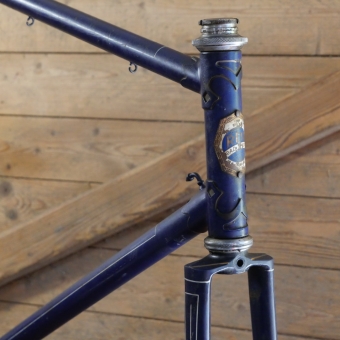 Fahrrad - Herrenrahmen RESI/Berlin, für Rennrad, 1950er J., Rahmennummer: 1939, Rahmenhöhe: 59cm, 27/28 Zoll, Einbaumaß: 114mm, sehr hochwertiger Rahmen vom Rahmenbauer, BSA Keillager, Kettenblatt 48 Zähne, Originallack blau mit Zierlinien gold/weiß, L
