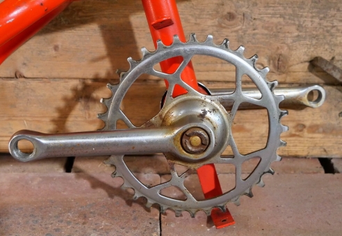 Rahmenhöhe: 29cm, 12 Zoll, feuerroter Originallack mit gelben Aufklebern, extra solide Ausführung