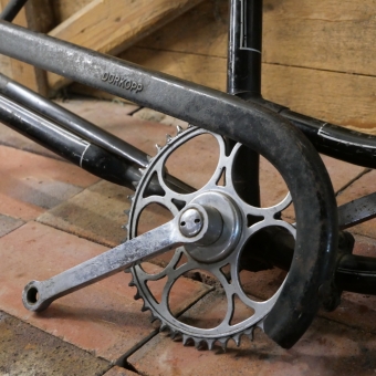 Originallack schwarz, Linien silber, Kettenblatt 48 Zähne, inkl. original Kettenschutz, ohne
