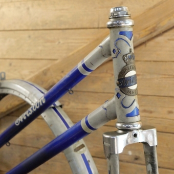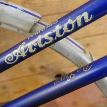 Fahrradrahmen ARISTON de Luxe, für Sportrad, Damen, 26 Zoll, 50er J., Stahl, grau/blau, Linien weiß/blau,