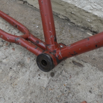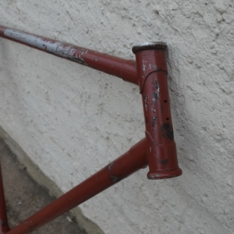 Fahrradrahmen "Adler" Herrenausf. 28 Zoll, Stahl, nachgestrichen, RH=55 cm, 50er Jahre. Der Rahmen wurde nachgestrichen. Mit Sattelstütze. Ideal zum Aufbau eines Klassikrades nach eigenen Wünschen und Vorstellungen.