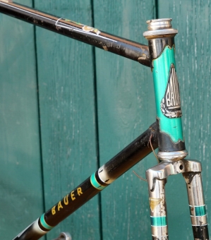 Fahrradrahmen BAUER Mod. Sport de Luxe, Herren, 26 Zoll, Stahl, 50er J., schwarz/silber/grün, Rahmenhöhe 55 cm,