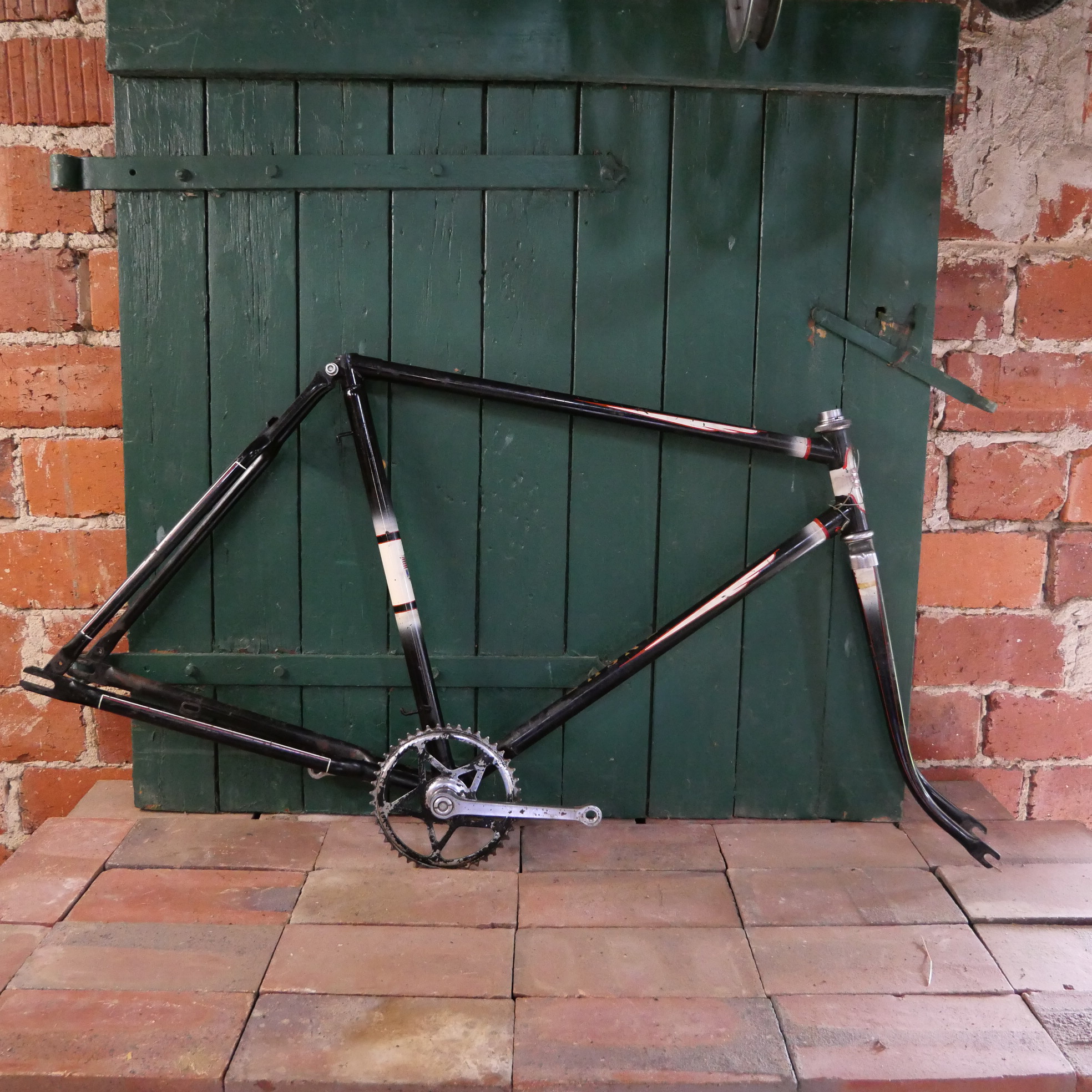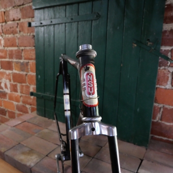 Fahrradrahmen "NSU" 28 Zoll, Herrenausführung mit Tretlager und Steuerkopfschild, Flügellinierung, Rahmenhöhe 56 cm, Rahmennummer 064XXX