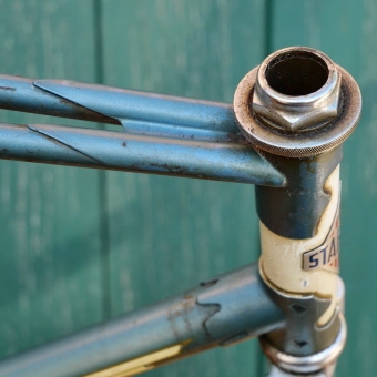 Fahrradrahmen STANDARD Doppelrohr, Herren, für sportl. Tourenrad, 26 Zoll, Stahl, Ende 50er J., graublau-