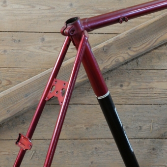 Fahrradrahmen RALEIGH Rialto, für sportl. Tourenrad, Herren, 28 Zoll, Stahl, 70er/80er J., rot/schwarz, Rahmenhöhe 54 cm, Einbaumaß 118 mm, BSA-Lager 68/35, OHNE Gabel! Steuerkopf 110/30 mm, alte Neuware in gutem Zustand gemäß Fotos