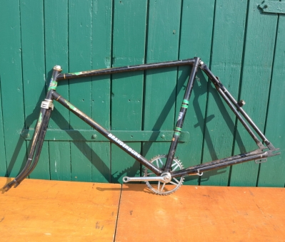 Fahrradrahmen Herrenausführung "Brandenburg" 28 Zoll, schwarz, Linierung grün/gold, Rahmenhöhe 55 cm, 50er Jahre mit Glockentretlager