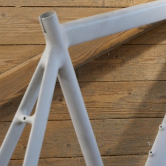Fahrradrahmen, Herrenausführung für Rennrad 28 Zoll, Aluminium gepulvert, um 2000, hellgrau,