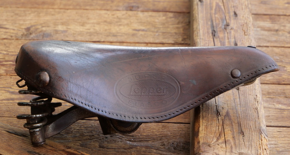 Sattel MIELE, Herren, für Sportrad, 50er Jahre, Leder braun, Gestell verchromt, Breite ca. 16 cm, Länge ca. 27 cm, gebraucht mit schöner Patina, Leder gut, Zustand gemäß Fotos