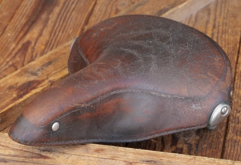 Sattel WITTKOP, Herren, 50er/60er Jahre, Leder braun, Gestell verzinkt, gepolstert, Breite ca. 22 cm, Länge