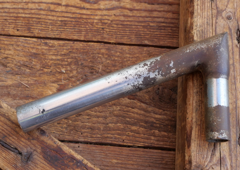 Winkelsattelstütze, Durchmesser: ca. 25,0 mm, Schaftlänge: ca 160 mm, verchromt, orig. 20er/30er Jahre, gebraucht mit Patina, Zustand siehe Foto.