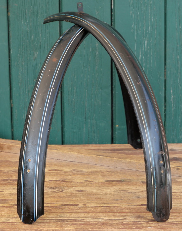 Schutzbleche Satz, 26 Zoll, Herrenausführung für Tourenrad, 30er-50er J., schwarz, Linien blau/weiß, gebr.