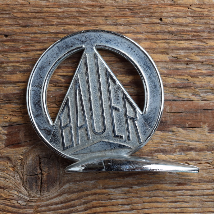 Schutzblechfigur BAUER, Plastik verchromt, orig. Altbestand 60er Jahre, Zustand siehe Bild