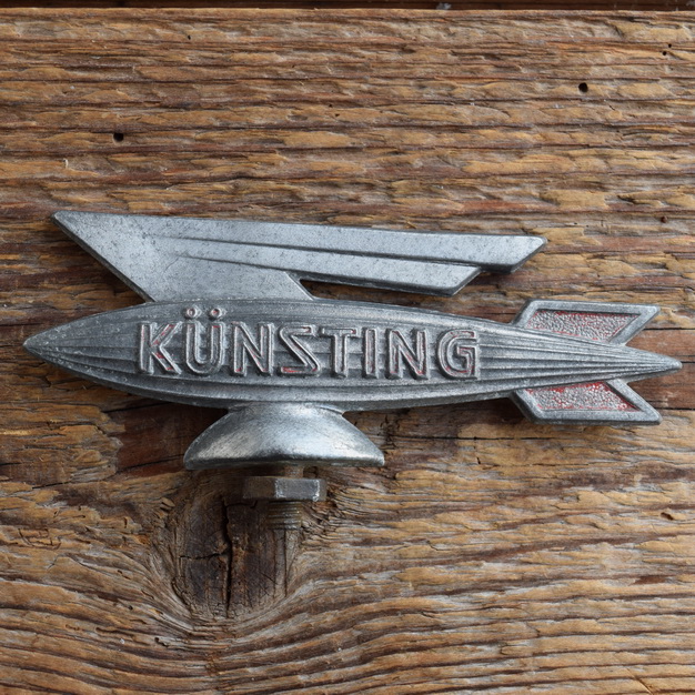 Schutzblechfigur KÜNSTING, Alu Druckguss, orig. Altbestand 50er Jahre, Zustand siehe Bild Passend zum entsprechenden Fahrrad oder schönes Sammlerstück für die Vitrine! Wir haben immer einige Hundert Schutzblechfiguren für Fahrräder und frühe Mopeds am