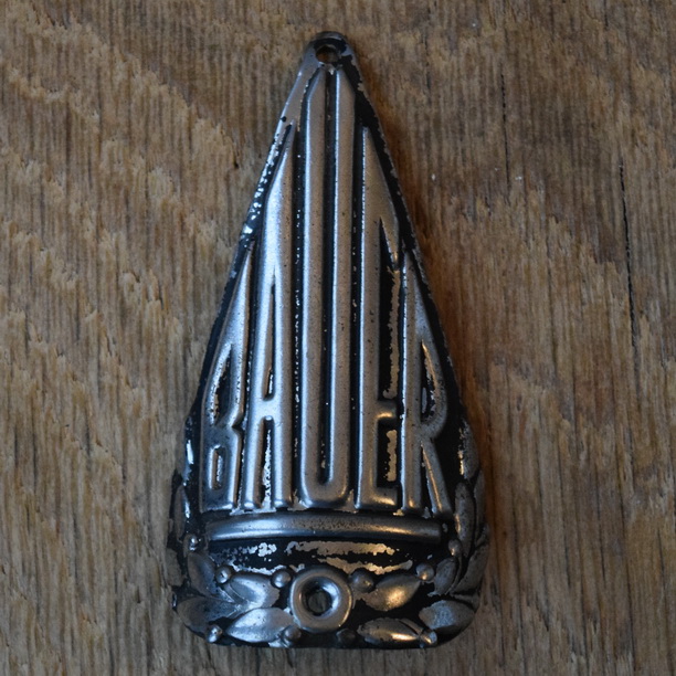 Steuerkopfschild BAUER, 50er Jahre, Originalschild aus Sammlungsbestand, Lochabstand 64 mm