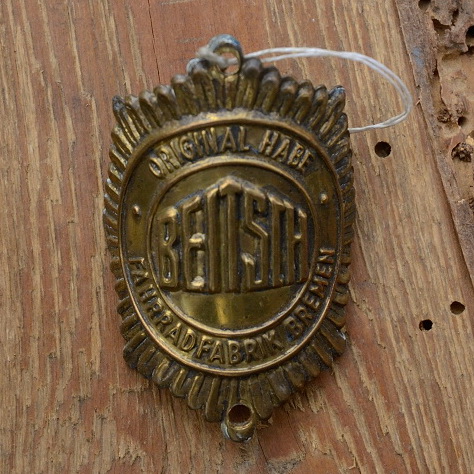 Steuerkopfschild BEITSCH, Bremen, 30-50er Jahre, Originalschild aus Sammlungsbestand, Lochabstand 47mm Ideal für den passenden Fahrradoldtimer oder die Sammlervitrine. Zustand siehe Bild.