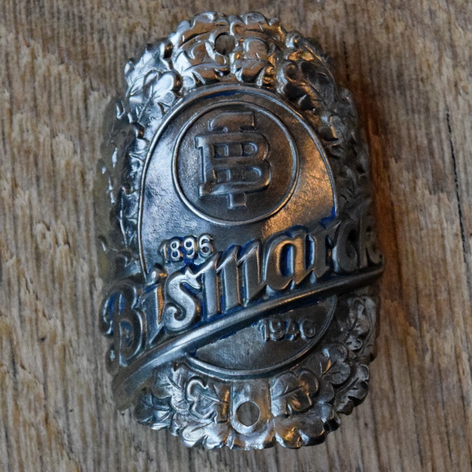Steuerkopfschild BISMARCK, 50er Jahre, Originalschild aus Sammlungsbestand, Lochabstand 50 mm