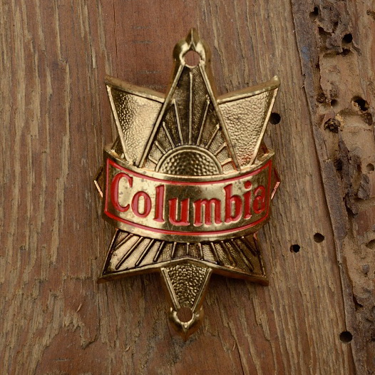 Steuerkopfschild COLUMBIA, 30-50er Jahre, Originalschild aus Sammlungsbestand, Lochabstand 45mm
