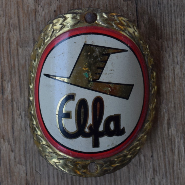 Steuerkopfschild ELFA, 50er Jahre, Originalschild aus Sammlungsbestand, Lochabstand 45 mm