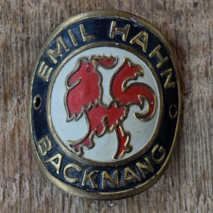 Steuerkopfschild EMIL HAHN BACKNANG, 50er Jahre, Originalschild aus Sammlungsbestand