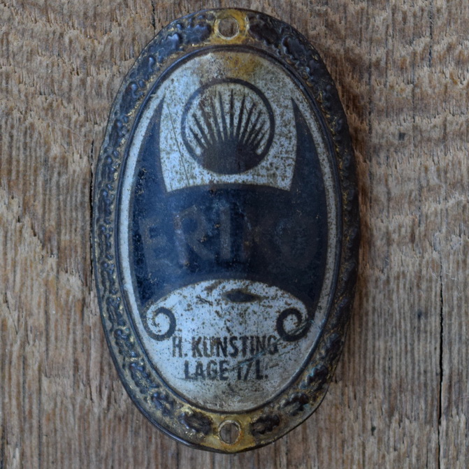 Steuerkopfschild ERIKO, 50er Jahre, Originalschild aus Sammlungsbestand, Lochabstand 58 mm