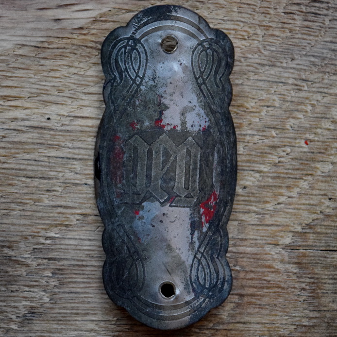 Steuerkopfschild GEG EINKAUFS-GENOSSENSCHAFT, 20er Jahre, Originalschild aus Sammlungsbestand, Lochabstand 66 mm Ideal für den passenden Fahrradoldtimer oder die Sammlervitrine. Zustand siehe Bild.
