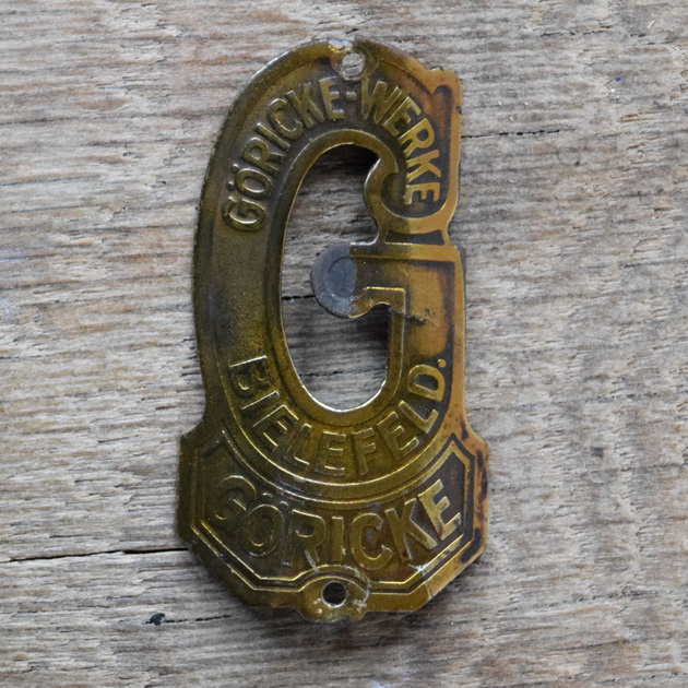 Steuerkopfschild GÖRICKEWERKE, 50er Jahre, Originalschild aus Sammlungsbestand, Lochabstand 47 mm