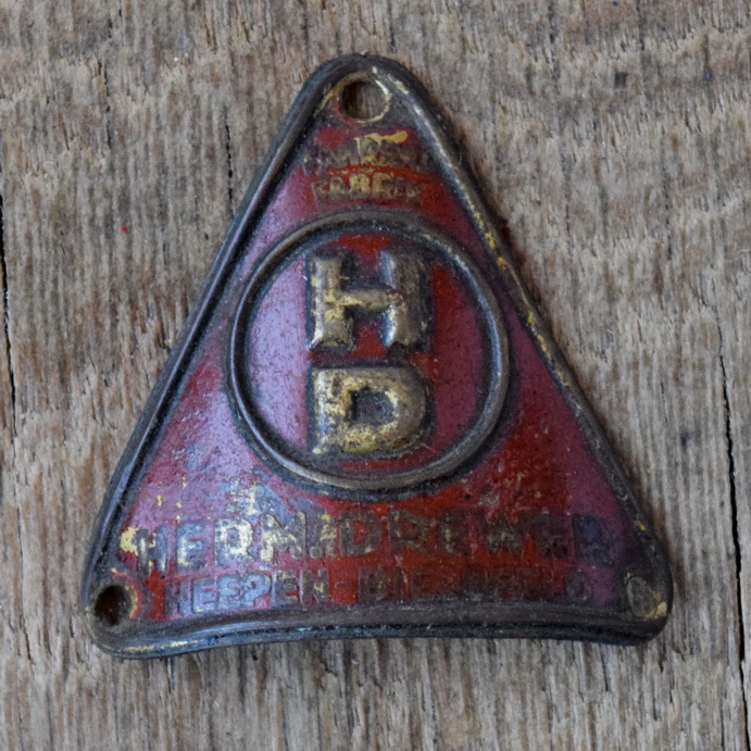 Steuerkopfschild HD HERMAN DREWER, 30er Jahre, Originalschild aus Sammlungsbestand