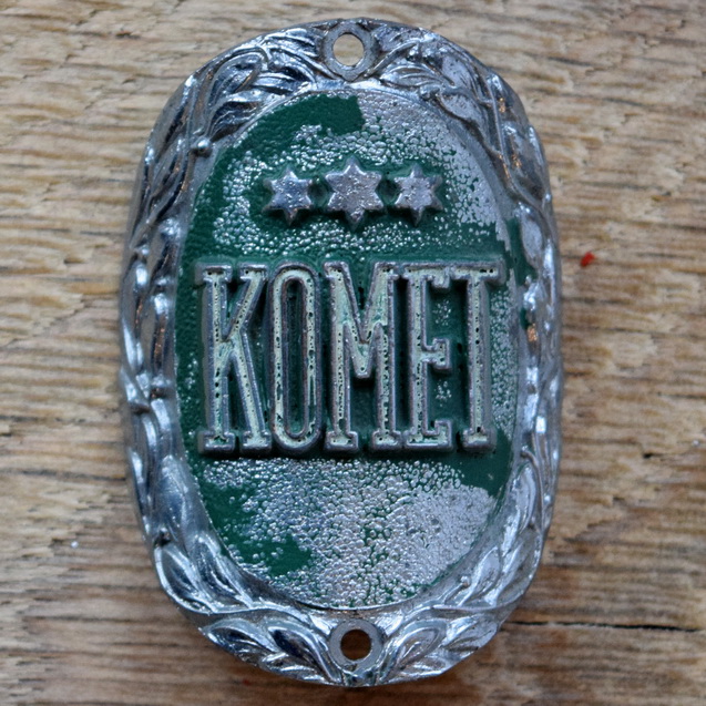Steuerkopfschild KOMET, 50er Jahre, Originalschild aus Sammlungsbestand, Lochabstand 47 mm
