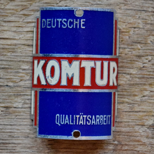 Steuerkopfschild KOMTUR, 50er Jahre, Originalschild aus Sammlungsbestand